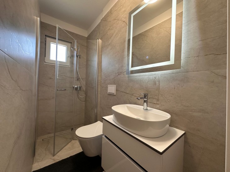 Unser Haus 2 wurde 2025 kernasniert, also runderneuert, mit neuen Böden, neuen Bädern inkl. Fliesen, neue Innen- und Außentüren sowie Fenstern, neuen Möbel (Schlafzimmer und Küchen), neuer Fassade, und wir haben jetzt einen der größten und schönsten privaten Pools (100qm) in Südistrien mit sehr großzügigen Liegeflächen und ausreichend Sonnenliegen mit Sonnenschutz. Außerdem wurden noch zwei E-Auto-Ladestationen (11kW) für unsere Gäste installiert.