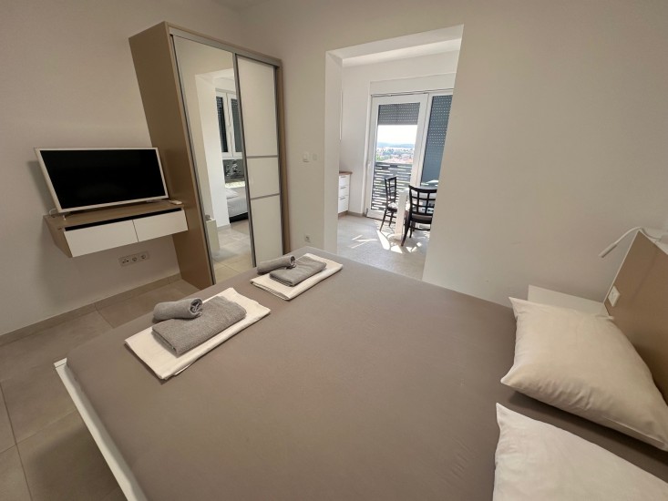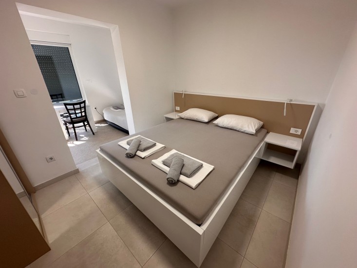 Das Apartment 213 befindet sich im Haus 2 im ersten Stockwerk. Es bietet Ihnen ein Schlafzimmer (Doppelbett), eine Kitchenette am Balkon und ein Badezimmer. Ein Zusatzbett ist möglich.