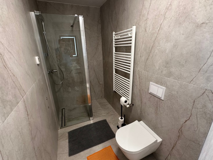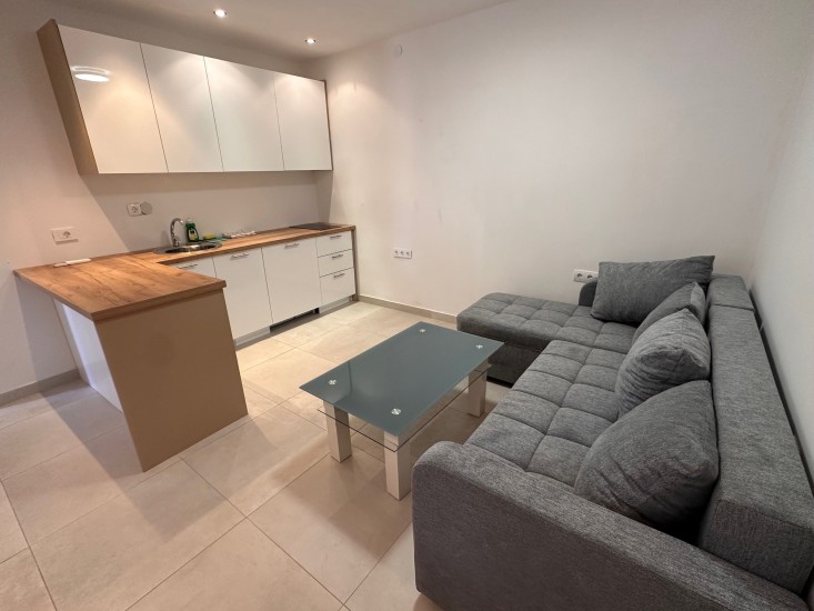 Apartment 201 is located on the ground floor of house no. 2. It offers a bedroom (a double bed), a kitchen and a living room with two sofa beds, a bathroom and a private terrace on the East side. Due to top equipment, like the massage shower, flat screen TV and spaciousness, this is one of the most popular accommodating units in our offer.
